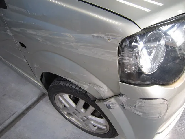 鹿屋市 板金塗装|スズキ ワゴンR フロントバンパー付近の板金塗装修理