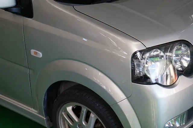 鹿屋市 板金塗装|三菱 アイ 左前のキズ・ヘコミ修理