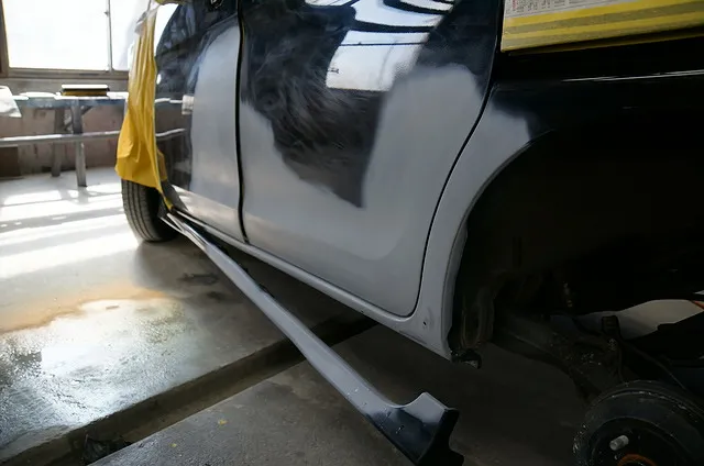 塗装直前の状態です。ドアのヘコミが解消されたいるのが分かりますね。