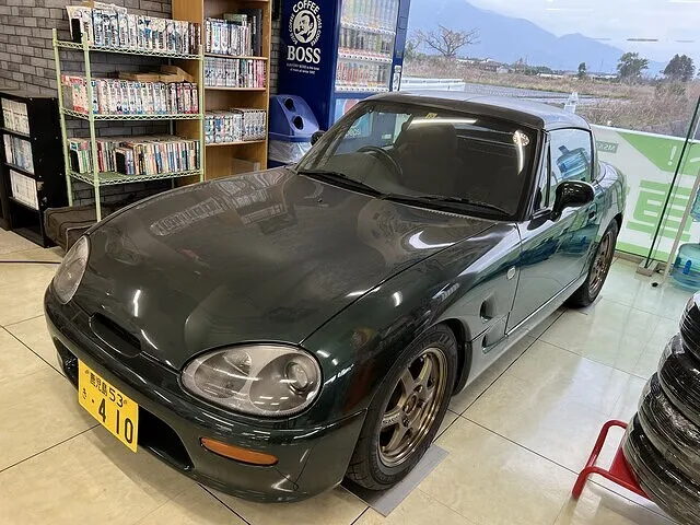 「振り切った車両」といえば、弊社店舗内に展示?保管?放置?しているカプチーノがあります…。レンタカーにすると面白そうではあるのですが、ちょっと「もったいない病」が出てしまうというか、思い入れのある車両なので勇気がいりますね。生産から30年を超える個体も出てきているので「ネオクラシック」なんて言われるジャンルに入ります。古いわけですから故障リスクなどを考えると「予防整備」などで運用コストもかさみそうです。スズキは古い車でも部品を生産し続けてくれるので、その点は安心なのですが金額は高騰してきています。生産ロットが少なくなるので仕方がない事ではありますね。