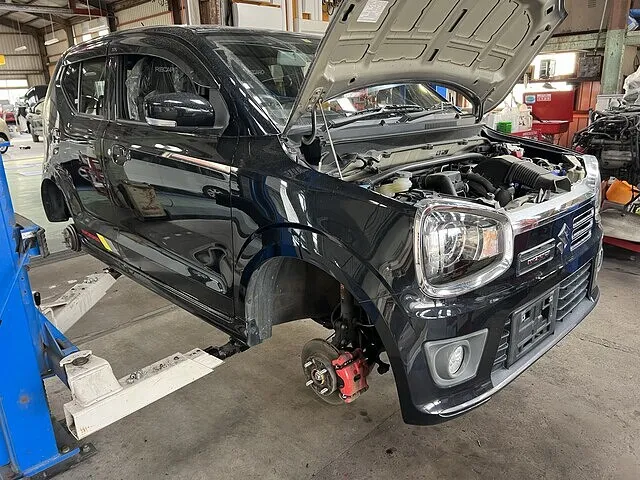 スズキのアルトワークス。こちらも86と同じく下取りで入庫した車両で、現在レンタカー登録のために車検整備中です。この最終型のHA36Sワークスは、R5年現在で中古車市場が高騰しており、なかには新車価格を優に超えるような価格設定の車両も見受けられます。ホンダのS660なども高騰気味らしいので、軽スポーツというニッチな車両であるうえに、廃盤により現在新車で購入できない状態。さらに、その代わりとなる車種が存在しないのが大きいのかもしれません。カーボンニュートラルが叫ばれる世の中で、今後このように元気な純ガソリンエンジンを搭載した車両は「出てこない」or「出しづらい」時代になってきていることを、世の車好き達は敏感に察知しているのかもしれません。