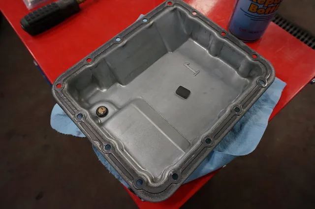 ジムニーのATミッションのオイルパンはこんな感じです。早速取り外してみましょう。