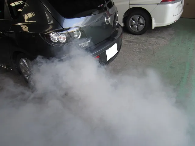 なかなかの排煙量ですね!白煙が出なくなるまでこの作業を行い完了となります。