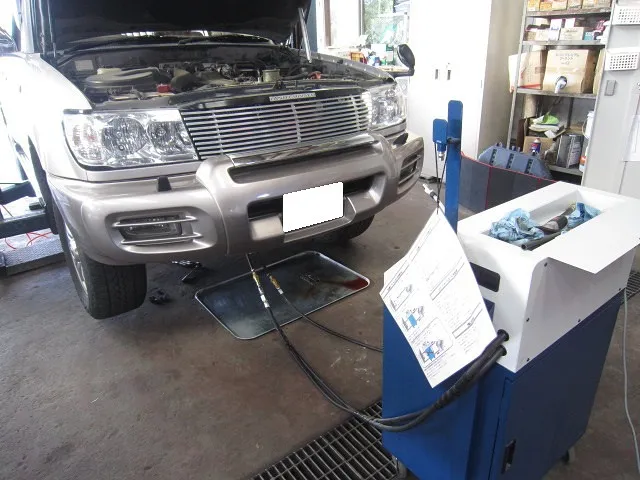 今回の車両は20万キロオーバーを走行したランドクルーザー。新車で購入してから一度もATFの交換をしていないとのこと。地元の宮崎県で過走行車両のATF交換をしてくれるところがなく、最終的に弊社HPにたどり着いたと教えて頂きました。遠路はるばるお越しいただきありがとうございます!