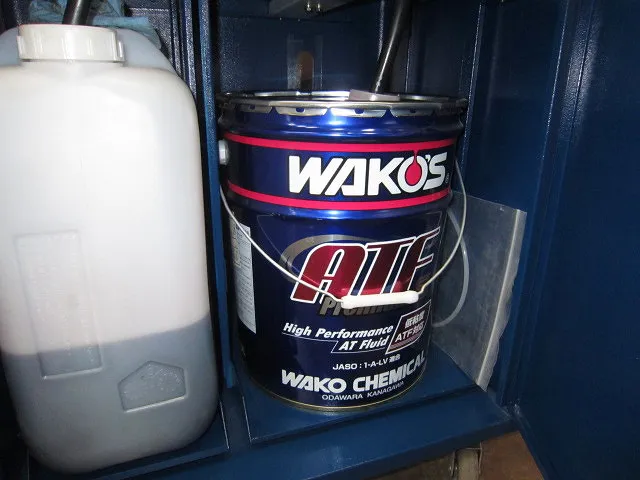 今回は安価なATFでミッション内部を洗浄し。その後本命のWAKO’S ATFプレミアムSに交換します。そのほうが、効率よく安価にATミッション内部のATFを高性能ATFに変換できます。