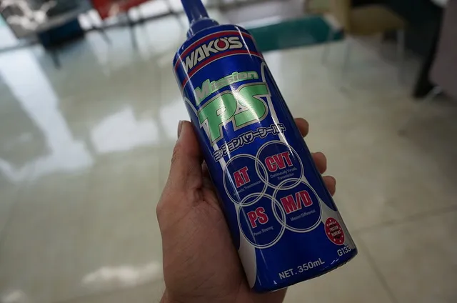 交換完了後、更なるフィーリング改善と今後のトラブル予防のためWAKO'S製ミッションパワーシールドを注入します。
