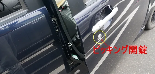ドアロックがかかったままになっていますので、ピッキングにてドアのロックを開錠します。鍵穴からピッキング作業を行いますのでボディにキズなどが付いたりする心配がありません。