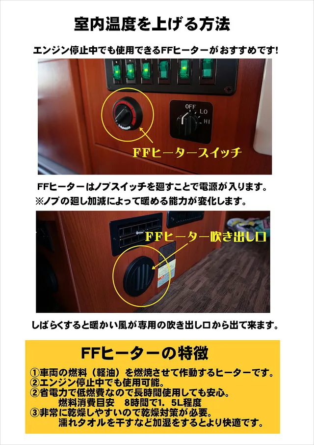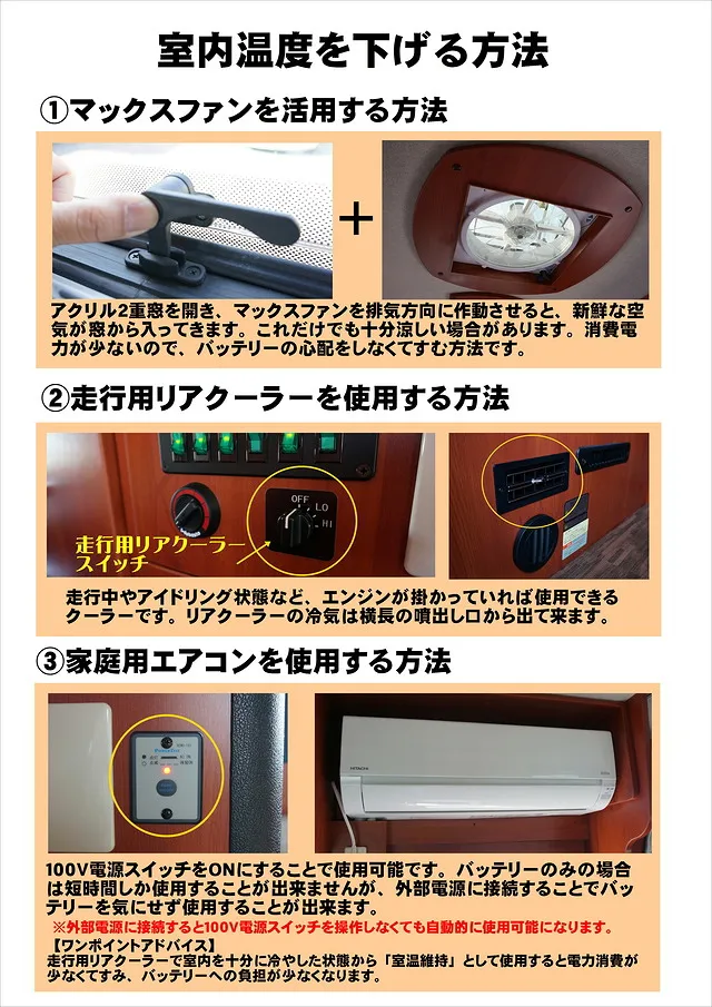 ●走行中は家庭用エアコンは使用せず「走行用リアクーラー」を使用しましょう!