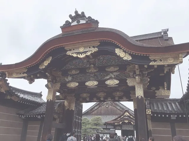 京都駅から地下鉄移動の予定でしたが、渋滞していなかったので車移動をしました。二条城の駐車場はキャンピングカー×で、歩いて15分ぐらいのコインパーキングにとめました。二条城は、豪華な作りで大人は喜んでいましたがあまりに広く、子供達はややブーイング。最後、鯉にエサをあげるところは楽しんでいました。