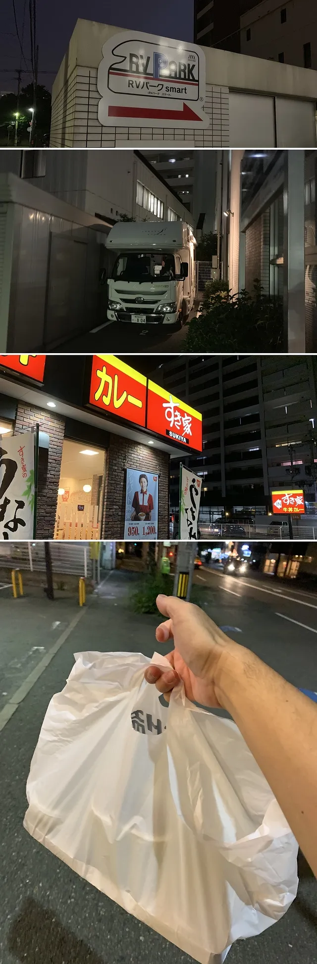夕ご飯を今から準備すると遅くなってしまうので、近くのコンビニで調達しようと考えていましたが、10分ほど歩いた先に「すき家」があったので散歩がてらテイクアウトしてきました。